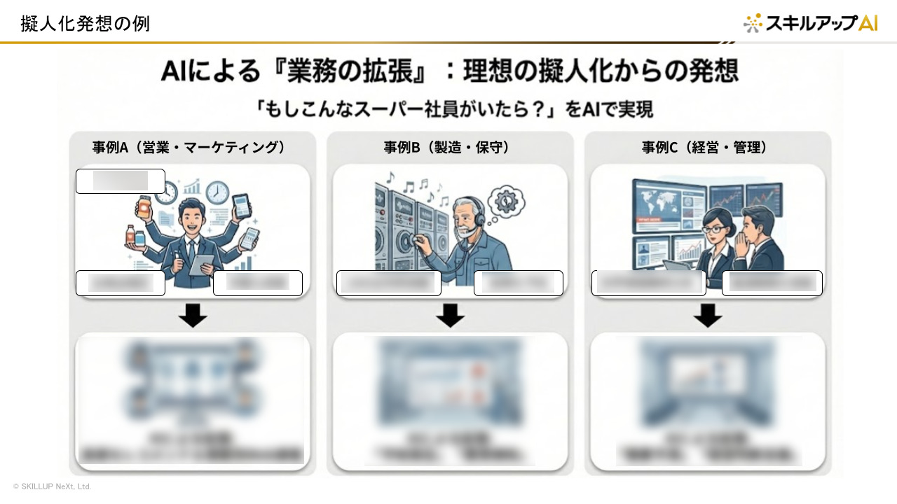 ビジネスインパクトが大きいのは、後者の「拡張」です。しかし、日常業務に追われる現場にとって、非連続な成長をイメージすることは容易ではありません。そこで有効なのが「擬人化」という思考フレームワークです。