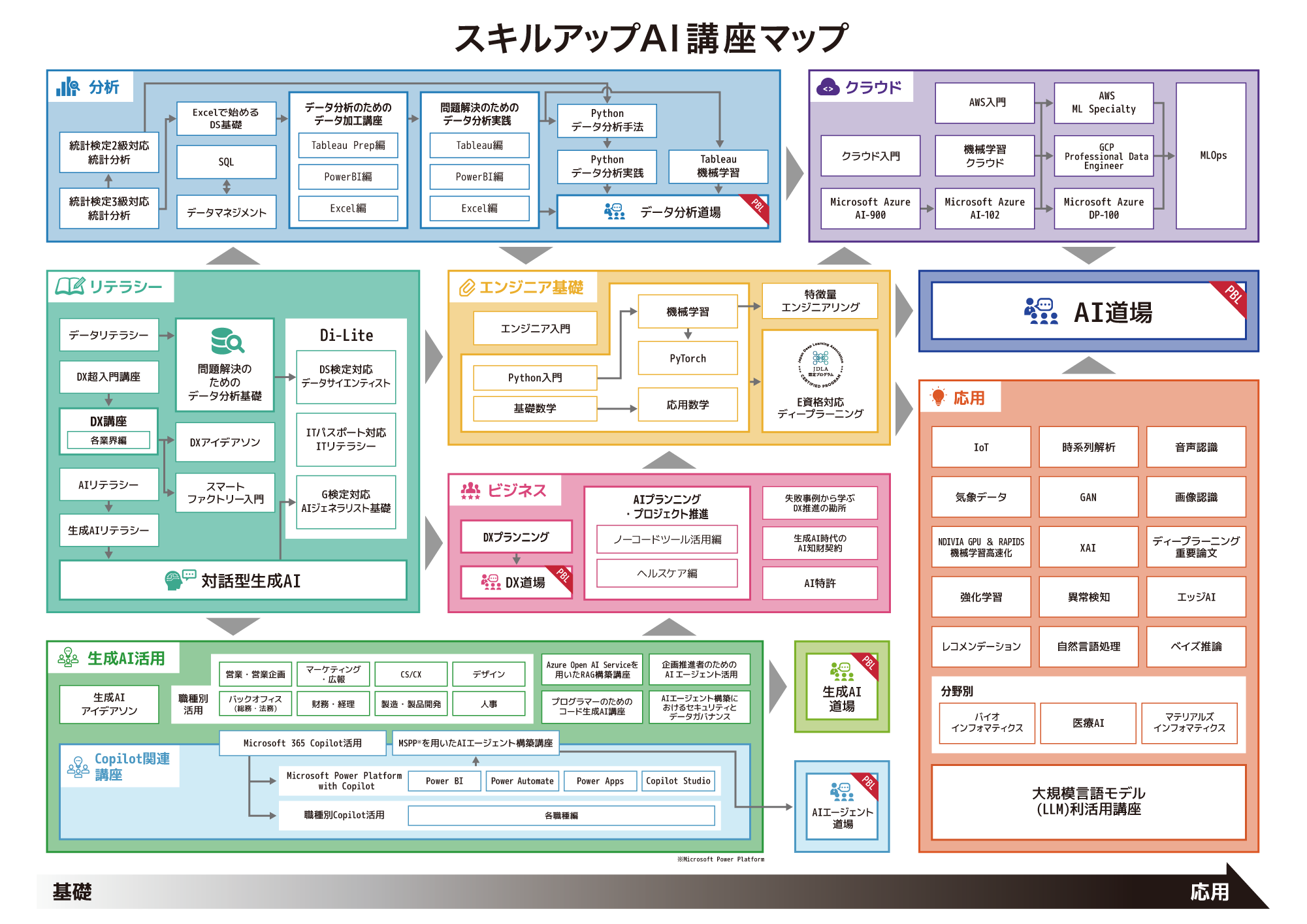 - リテラシーからビジネス、エンジニア基礎、生成AI等幅広い領域を網羅