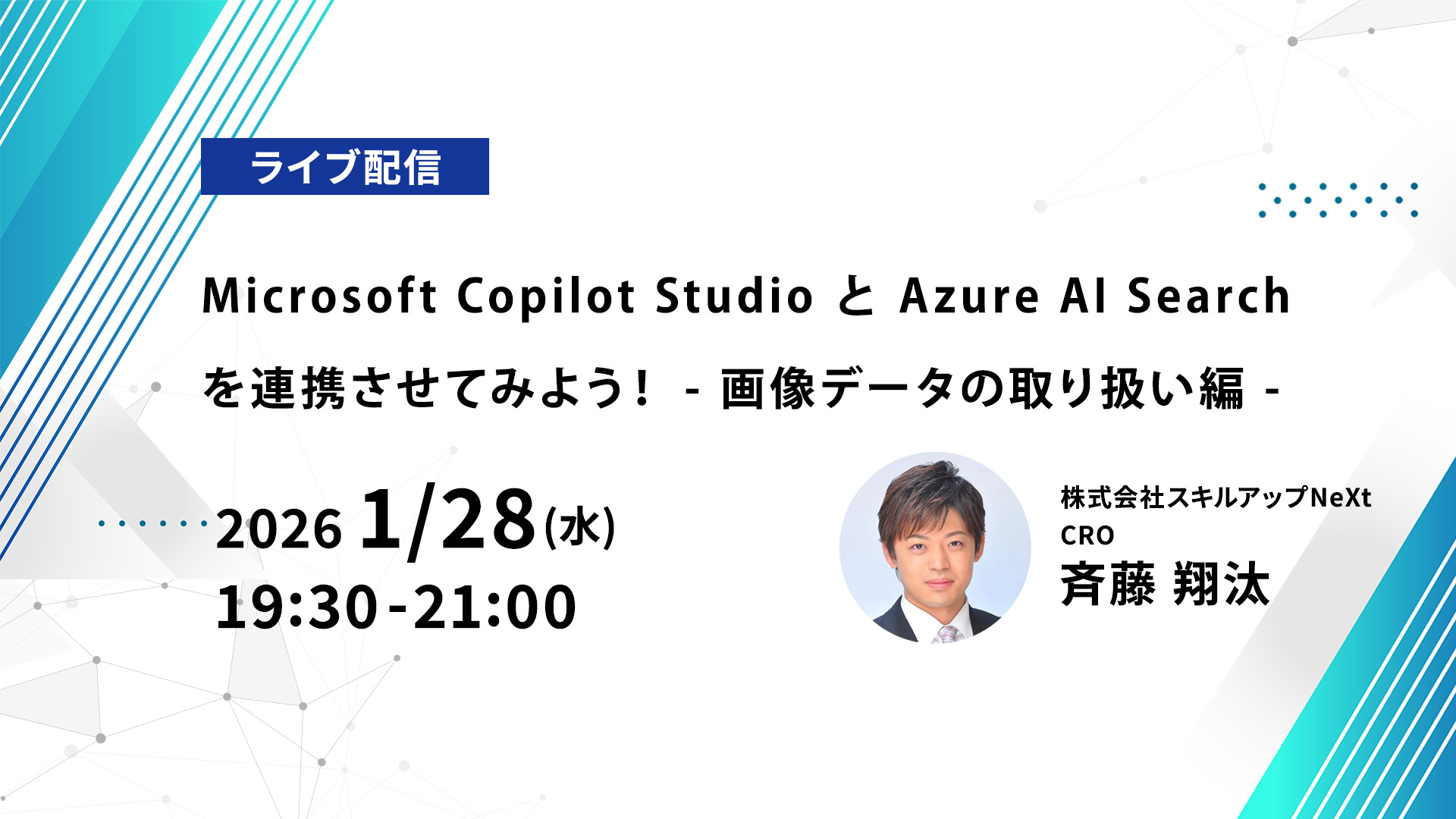 今回のスキルアップAIキャンプでは、Copilot Studio の標準機能の限界を踏まえつつ、Azure AI Search が持つ高度な検索機能(メタデータ検索、画像検索、セマンティック検索など)の概要と、両者を連携させる具体的なメリット、そして導入にあたっての勘所について解説します。